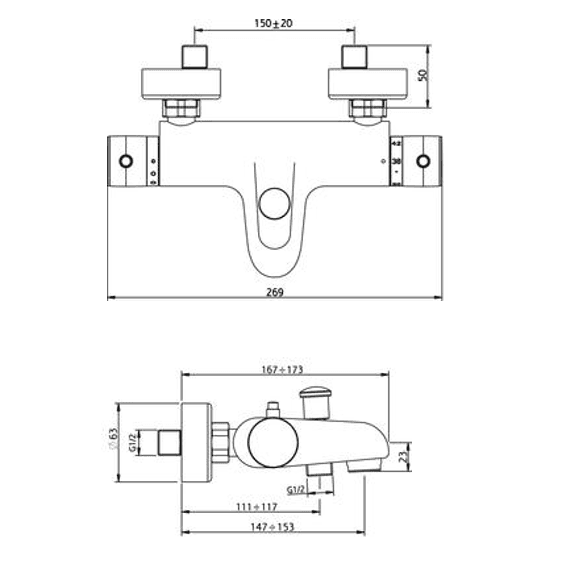Mitigeur thermostatique bain/doucheBec fixe avec aérateur anticalcaire Economies d’énergie et d’eau grâce à la technologie C2 Contre-écrous verrouillables à étanchéité intégrée. Croisillons ABS. Cartouche monobloc. Limiteur de débit réglable par tête 1/2 tour. Système économiseur d’eau. Butée de sécurité à 38°C. Arrivées écrous prisonniers 20/27. Raccords muraux excentrés avec rosaces. Filtres et clapets anti-retour incorporés au corps Pression maximum : 5 bar – Pression d’utilisation : 3 bar Température maximum de l’eau : 80°C (176°F) Produit Conforme aux réglementations en vigueur Classement NF-Ge3 Garantie 10 ans contre tout vice de fabrication y compris pour les cartouches Nettoyage à l’eau savonneuse avec un chiffon doux et bien sécher Ne pas utiliser de produits nocifs, abrasifs ou chlorés S’installe sur toutes les installations de douche avec un entraxe de raccordements de 150mm ± 20 mm Adapté aux logements collectifs et individuels groupés avec la certification Ge3. Sortie 15/21 adaptable sur tous les flexibles de douches Poids: 4KG 5001-90A